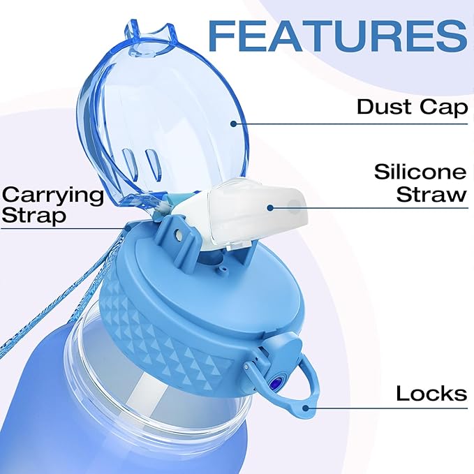 - 【Best for Kids】: Specifically designed for young children to promote hydration throughout the day. The flip-top lid incorporates a safety lock to prevent dust and leaks and can be effortlessly