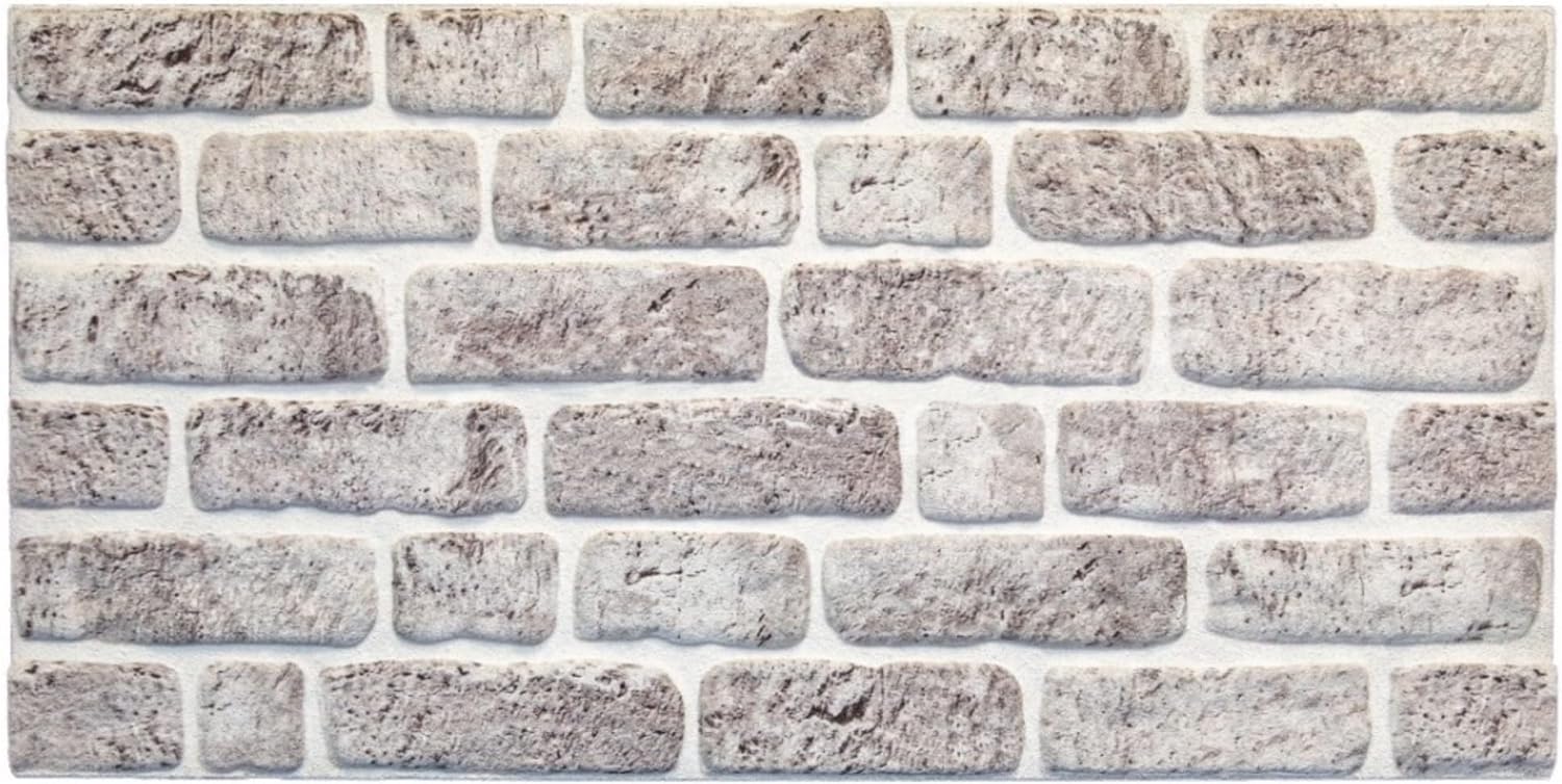 Dundee Deco 3D Wall Panels Faux Brick - Cladding, White Grey Stone Look Wall Paneling, Styrofoam Facing for Living Room, Kitchen, Bathroom, Balcony, Bedroom, Set of 5, Covers 27 sq ft