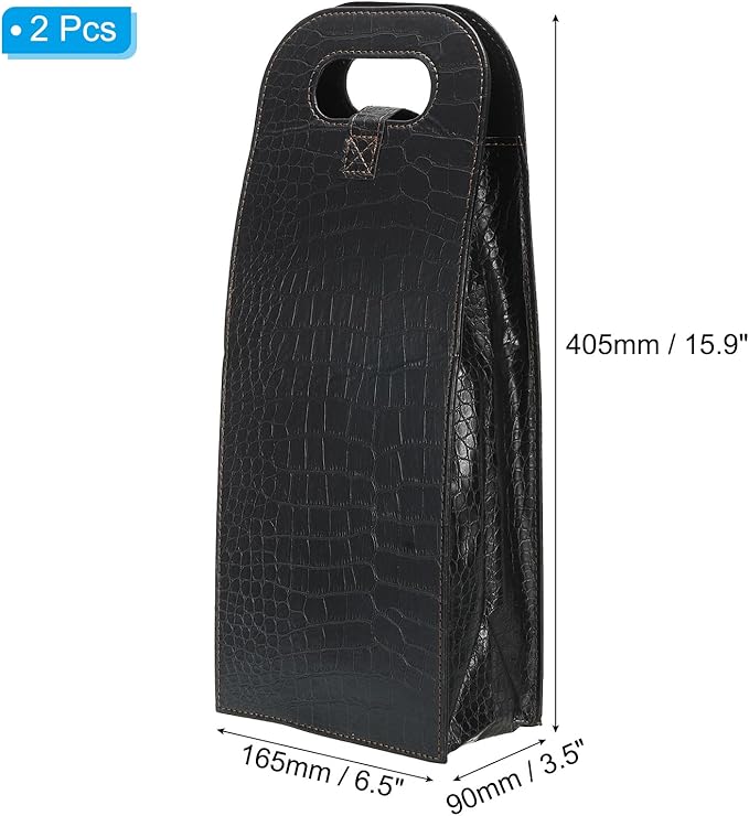 - Color: Black; Material: Leather; Thickness: 3.5mm / 0.1 inch; Size: 165 x 90 x 405mm / 6.5 x 3.5 x 15.9 inch(L*W*H); Packing List: 2 x Wine Carrier Tote