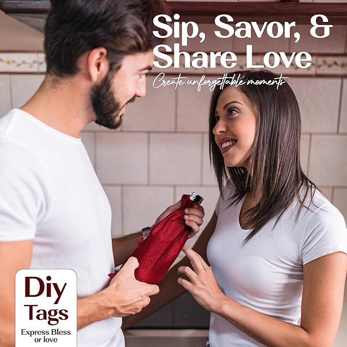 - Blank design for convenient use: liquor bottle gift bag is equipped with a drawstring, easy to close and open, convenient for storing wine bottles or other items, and the label has a blank design, so you can write blessings or name on it, which is pre-punched, easy to use, Comes with a beautiful pen to write the right message in each gift.