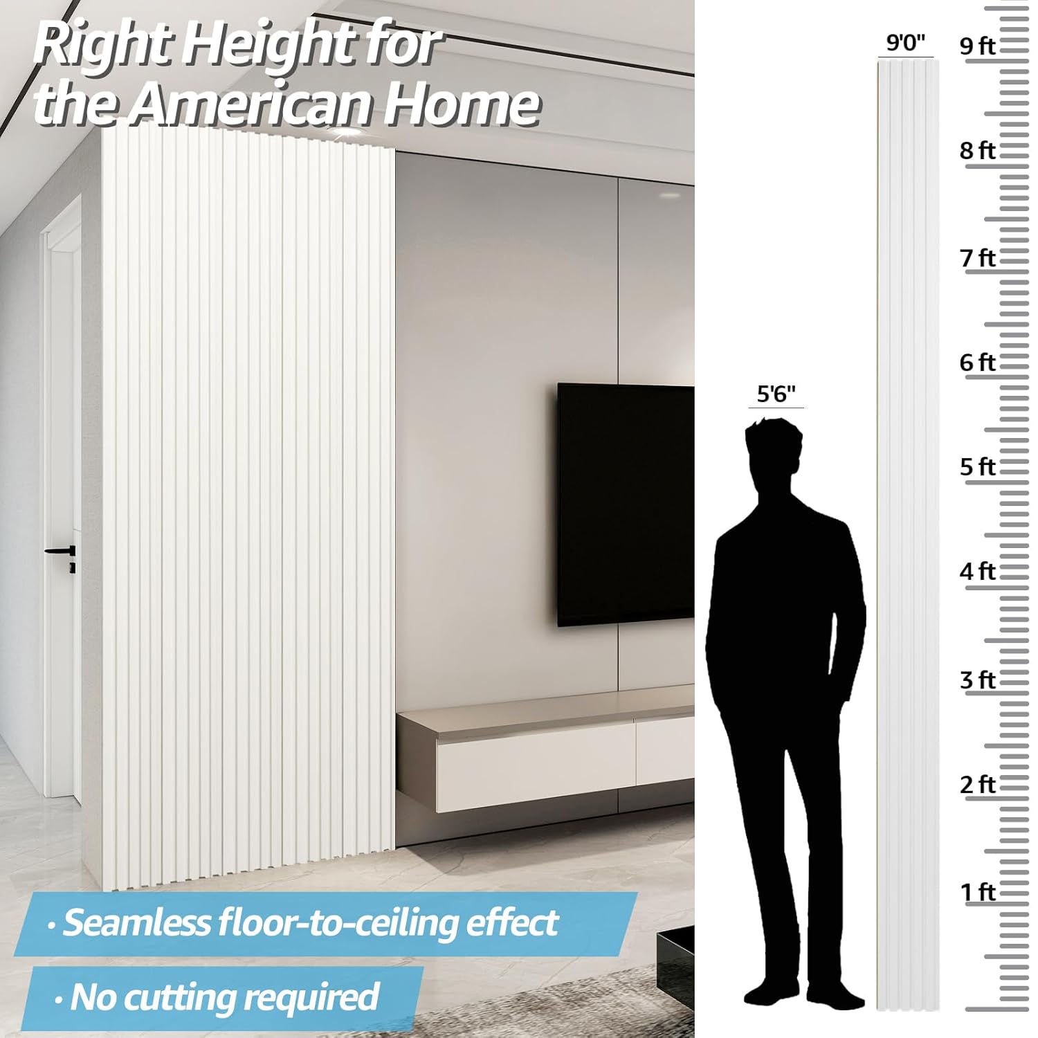 Art3d WPC Slat Wall Panels, 8-Pack 108 x 6 Inch 3D Wall Accents for Interior Wall Decor, Living Room, Bedroom, White