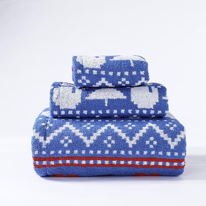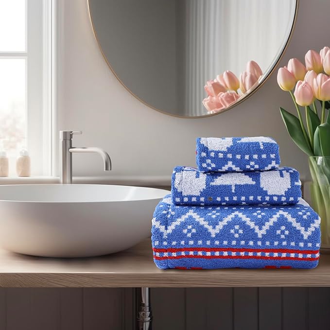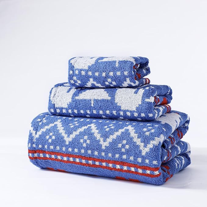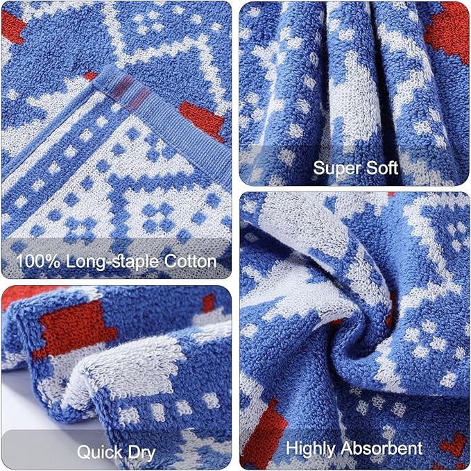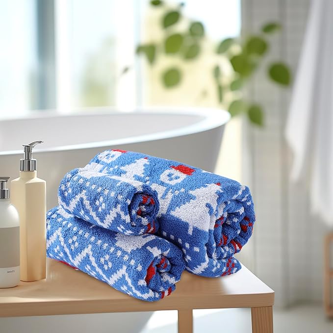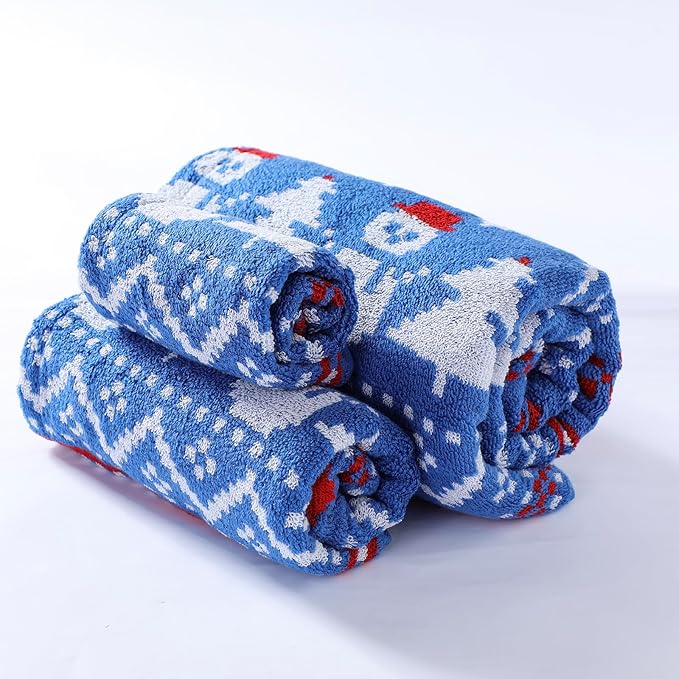 Luxury Blue Christmas Snowman Bath Towel Sets for Boy Girl Gift , 1 Bath Towels 1 Hand Towels 1 Washcloths 100% Cotton Ultra Soft Fluffy Highly Absorbent Double Sided Pattern Towel for Face Body