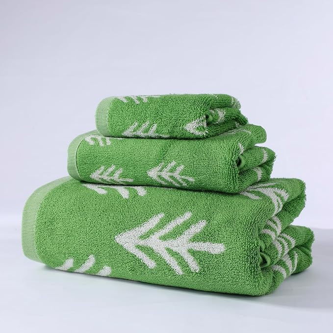 Luxury Christmas Tree Pine Green Bath Towel Sets for Bathroom, 1 Bath Towels 1 Hand Towels 1 Washcloths 100% Cotton Fluffy Highly Absorbent Double Sided Pattern Towel for Women Kids Elderly