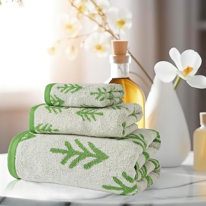 - Green Pine Thick Ultra Soft Grey Bath Towel Sets: 1 Bath Towels of 27.6" x 55.1", 1 Washcloth Towels of 13.8" x 30" and 1 Hand Towels of 13.8" x 13.8".