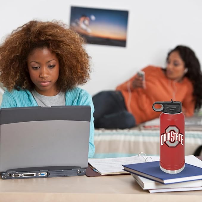 Ohio State University 32oz Stainless Steel Double Walled Red Beverage Bottle with Flip Straw Spout- College Gear for Playoff Season – For Office, Home or Auto – Show your Buckeye Pride