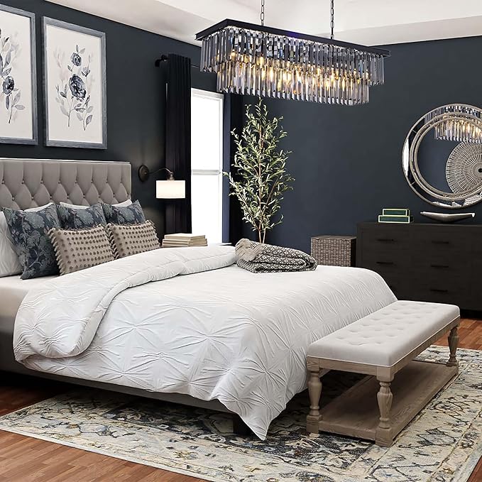 - 11 Lights Rectangle Chandelier: Combines classic and contemporary elements, the clear and simple black lines are equipped with high-quality k9 crystals to inject dazzling brilliance into your space