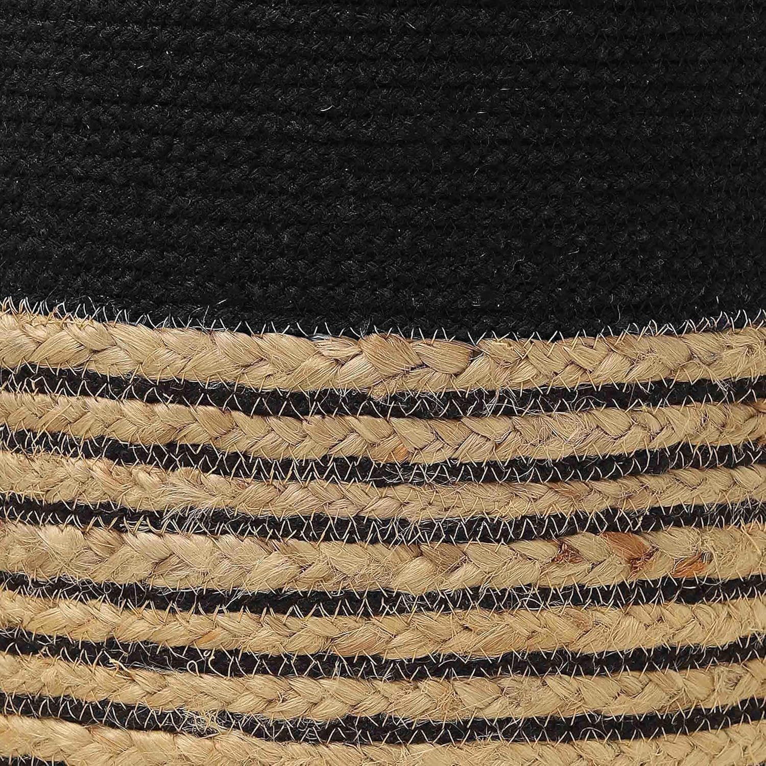 REDEARTH · Cylindrical Pouf Ottoman - Braided Pouffe Accent Sitting Round Footrest for Living Room, Bedroom, Nursery, kidsroom, Patio ; 70% Cotton 30% Jute, Set of 2 (14.5x14.5x16; Black Natural)