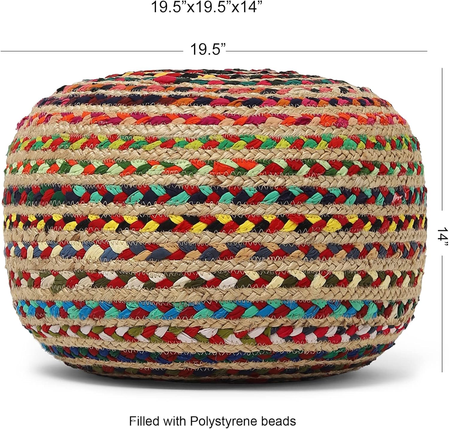REDEARTH · Round Pouf Ottoman - Braided Boho Poof Home Décor Pouffe Accent Sitting Circular Foot Rest for Living Room, Bedroom, Nursery, Lounge; Jute and Cotton Set of 2 (19.5"x19.5"x14"; Multi)