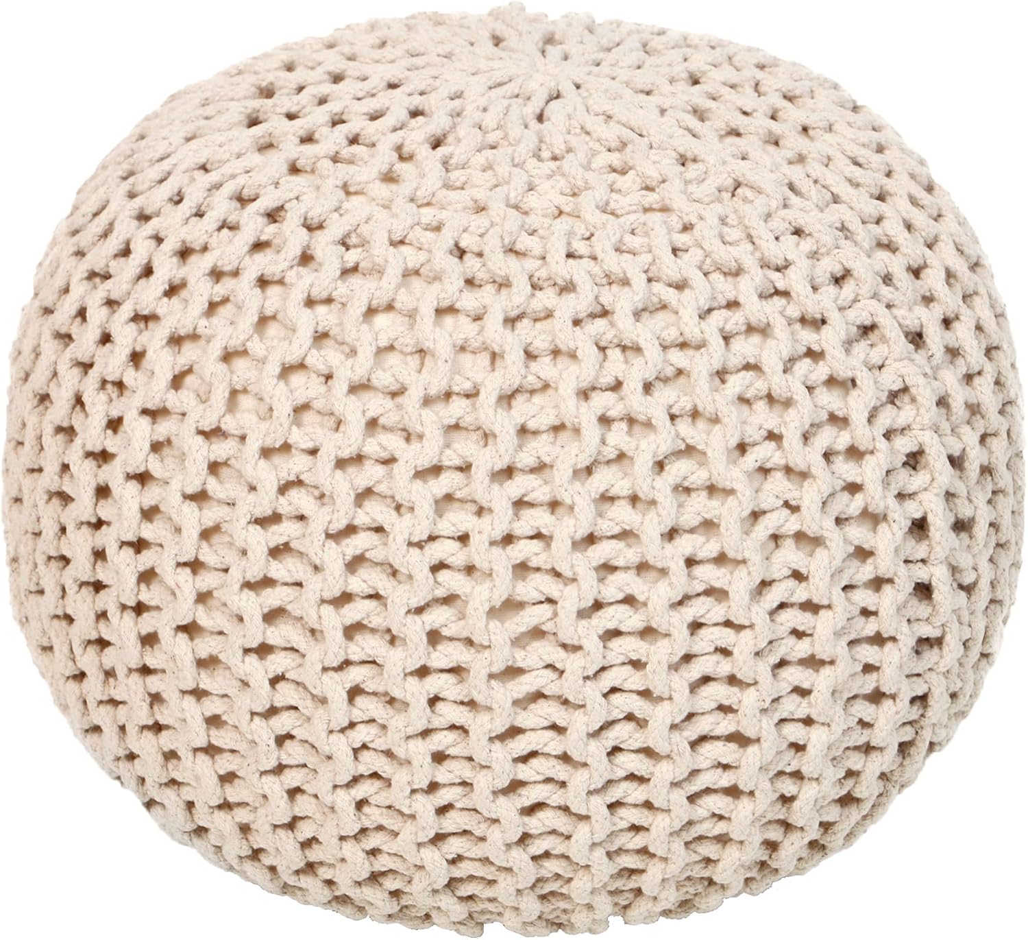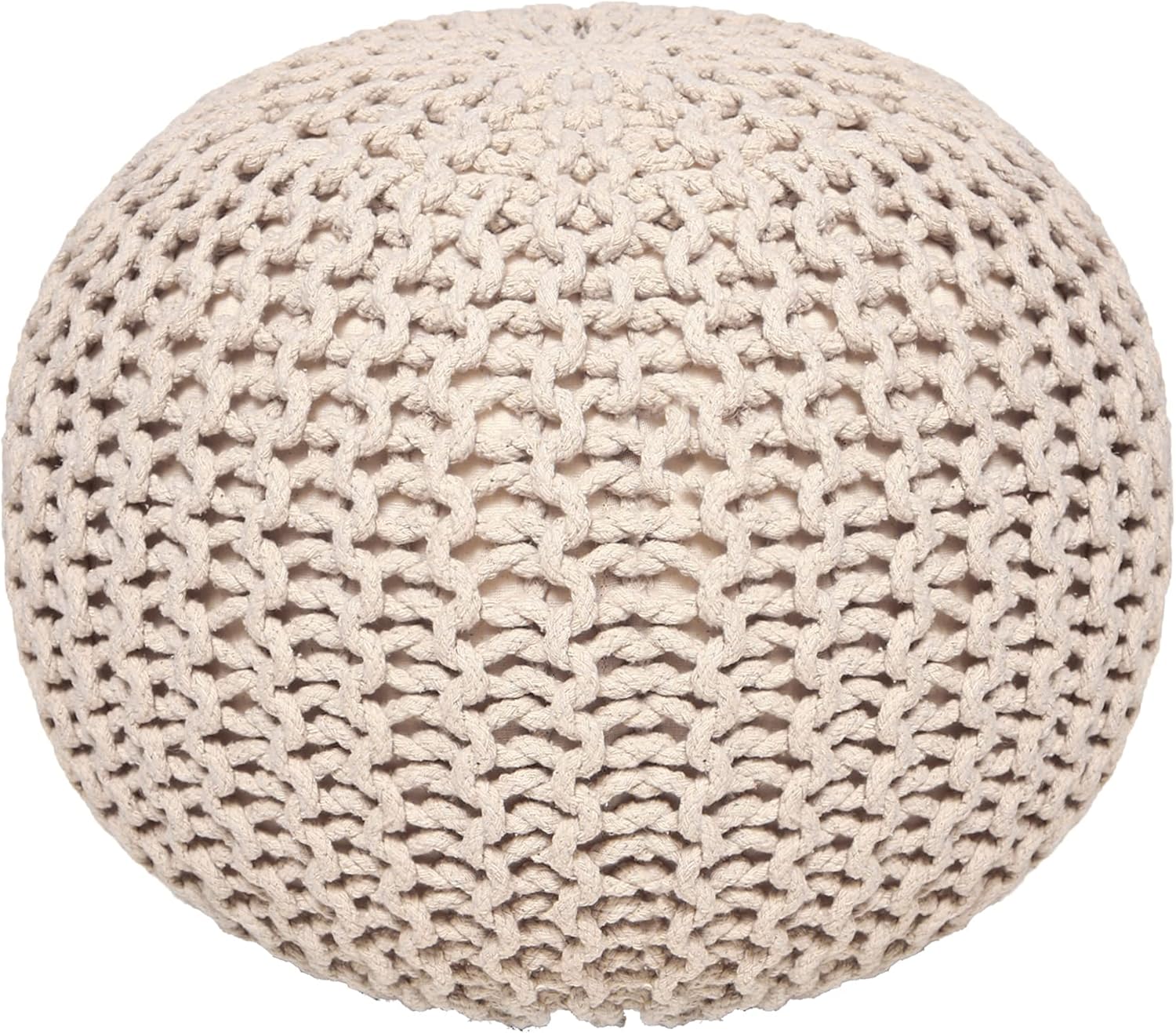 REDEARTH Round Pouf Ottoman - Cable Knitted Boho Poof - Home Décor Cord Pouffe Handmade Circular Footrest for Living Room - Bedroom - Kids Bedroom - 100% Cotton Pouf (19.5"x19.5"x14") - Ivory