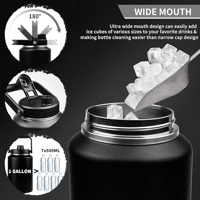 - 【Wide Mouth Water Bottle】: Our large water bottle features a ultra wide mouth design with a mouth diameter of 4.33 inches, allows ice cubes of all sizes to be easily added to your favorite beverage. And our wide mouth is easier to clean bottles than the narrow lid design.