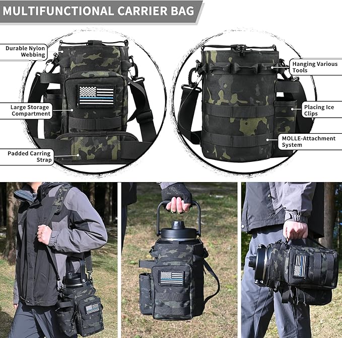 - 【Suitable For Traveling & Sport】: Wherever you go, you can bring a water jug with you. If you or your loved one is an outdoor worker, such as movers, truck drivers or couriers, this bottle is a lifesaver in the summer heat. It's also great for workout, hiking, camping, student football training, baseball training or backpacking. Our water bottle with tactical carring bag is a great gift idea!