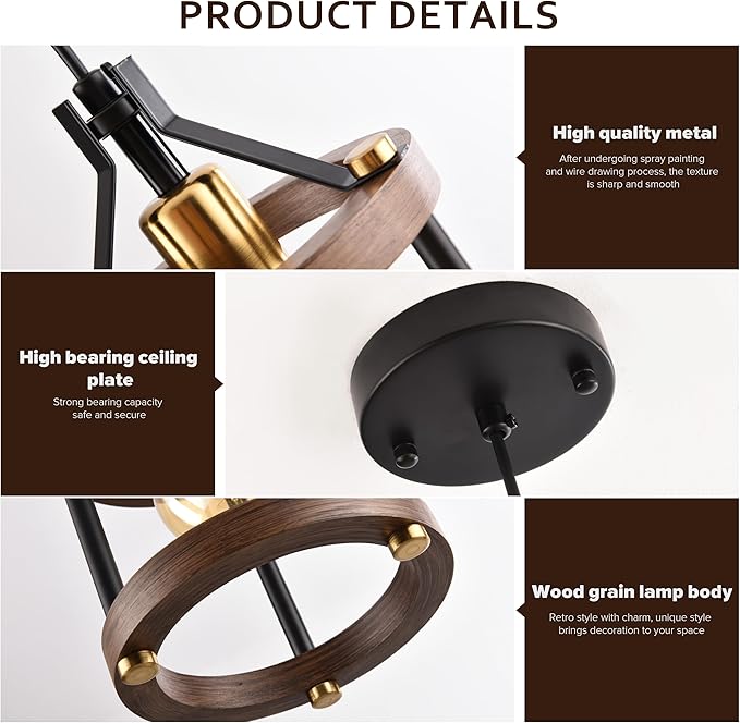 - [Widely used]: This farmhouse pendant lamp is made of wooden metal frame, and all of them are painted with paint, which shows the appearance of industrial farmhouse and adds style and artistic sense to your home. It is the ideal choice to illuminate the interior areas such as kitchen, dining room, living room, coffee shop, bedroom or lobby.