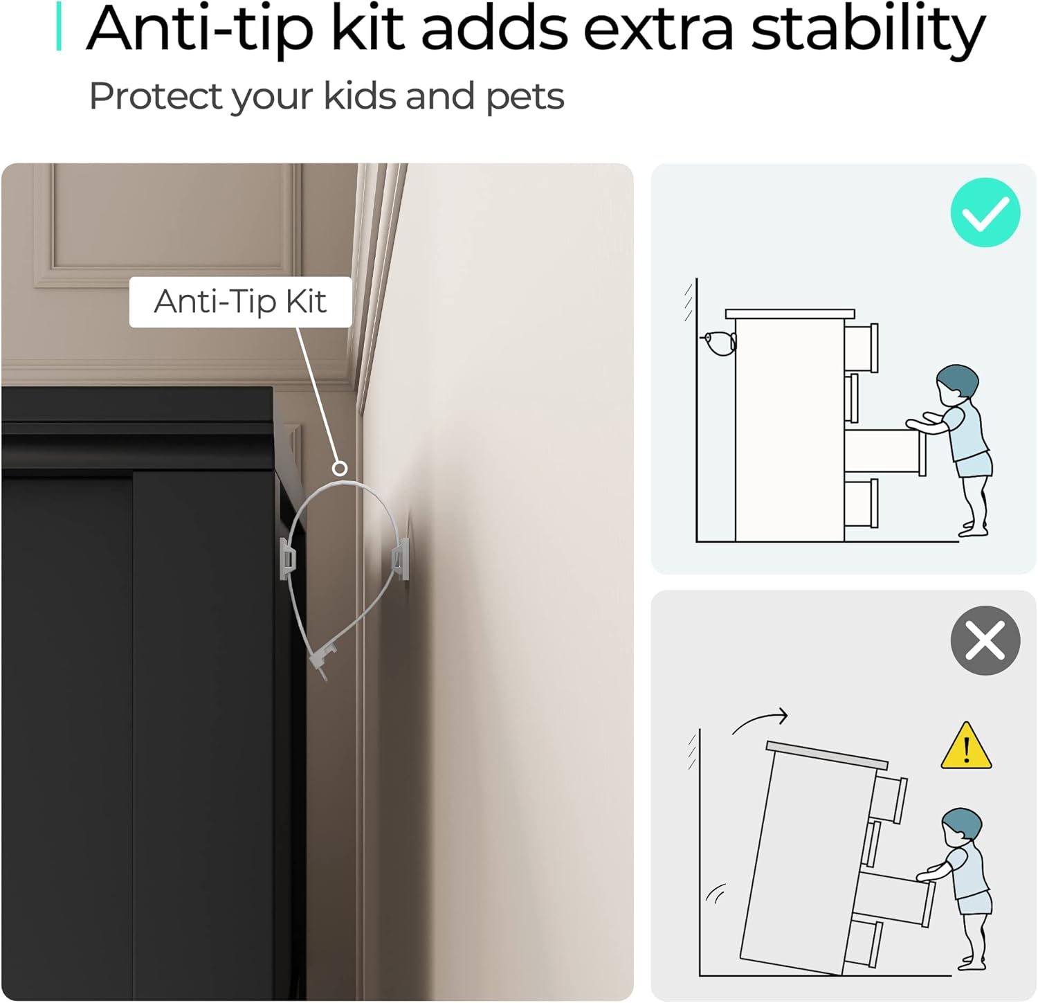 - [SAFETY FIRST] - Wall anchor kit provided to prevent tip-over incidents. Smooth metal runners on each drawer with safety stops prevent drawers from puling out. Hardware and easy-to-follow assembly instructions included. Two people recommended.