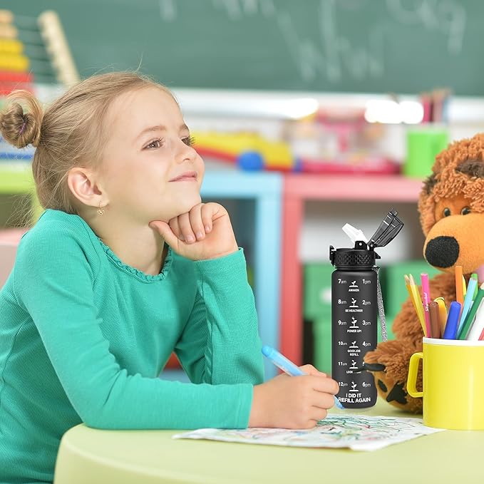 - 【Best for Kids】: Specifically designed for young children to promote hydration throughout the day. The flip-top lid incorporates a safety lock to prevent dust and leaks and can be effortlessly
