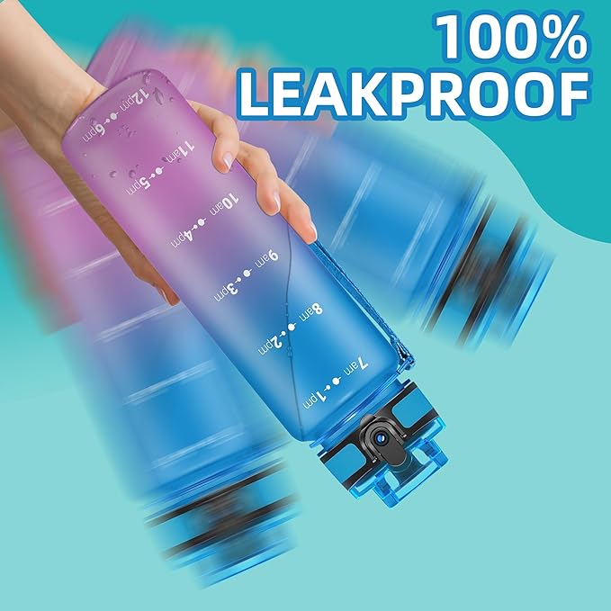 OLDLEY 32 oz Water Bottle, Motivational Water Bottle with Time Marker, Sports Water Bottle With Strap, Leakproof & BPA Free Large Water Bottles for School, Gym, Travel, Outdoor, Tritan,Blue&Purple