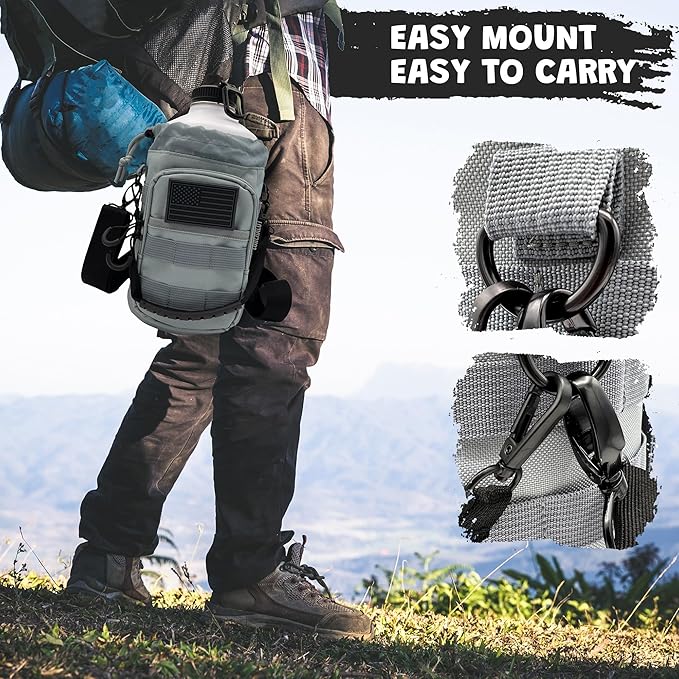 - TACTICAL BAG FOR EASY CARRYING: Bottle holder includes removable shoulder strap and removable rubberized handle; Water resistant dustproof bag has MOLLE webbing attachments and a big pocket for a phone, hidden mesh pocket for money, cards, and keys