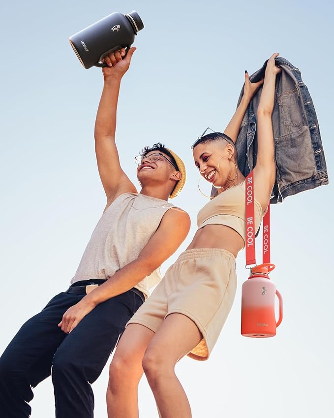 - Unleash Your Style, Hands-Free: Elevate your fashion game with this half gallon water bottle's exquisite adjustable shoulder straps and eye-catching design. Whether worn crossbody, single-shoulder, or hand-held, it's a statement piece that complements your vibrant personality.