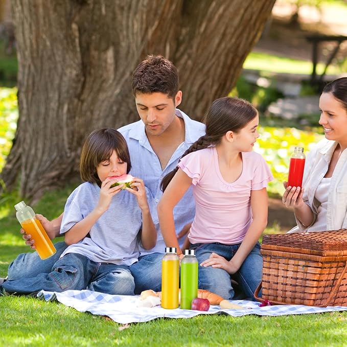 - STAY HYDRATED WHEREVER YOU GO: The slim and portable design means you can take your glass juice bottles with cap everywhere, perfectly for garden parties, homemade drinks, weddings, picnics, school, work, gym, fitness, yoga and beach trips. Easily store in the fridge and freezer safe, lunch bar or car cup holder. These Zukro glass water bottles is dishwasher safe, easy to fill and clean