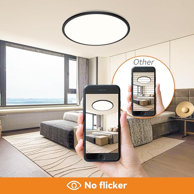 - 【Energy Saving & 3 Color Modes】Equivalent to a traditional 150W two-bulb, Slochi LED ceiling light only has 36W(3600 lumens) low power consumption, which can save up to 90% on your home electricity bills by replacing your old lighting fixtures . In addition, our flush mount ceiling light adopts advanced color temperature adjustable chip with 3 color temperatures (Warm White 3000K, Natural White 4500K, Daylight White 6000K).