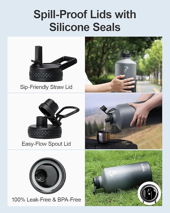 - No Leaks, No Worries: This stainless steel water bottle ncludes two leak-proof lids—a straw lid and a spout lid. Both are equipped with silicone rings to prevent any spills or leaks, and are completely BPA-free for your peace of mind.