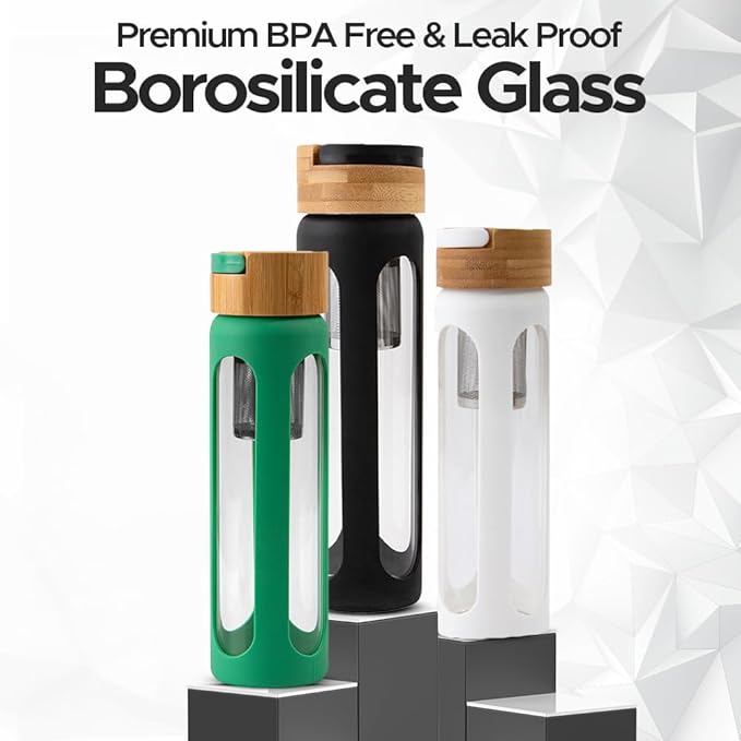 - PREMIUM BOROSILICATE GLASS: The Nuzi glass water bottles are made from high-quality borosilicate glass, ensuring a durable and leak-proof experience. Our infuser water bottle is free from harmful chemicals like BPA, lead, and phthalates, providing a clean and pure water taste with every sip.