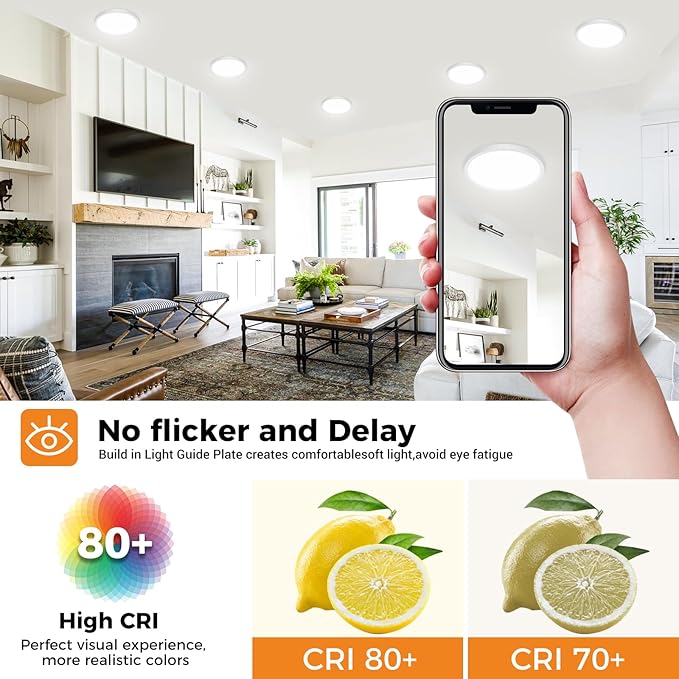- 【Eye Protection & High Performance】 The low profile ceiling light with “CRI >80” will make your home looks very bright. The light output is stable, without flickering, or harsh glare, to protect your eyes. The round led light fixture adopts an integrated design, even if used for a long time, there will be no shadows or black spots inside the lamp, thus maintaining a fresh appearance for many years without cleaning.