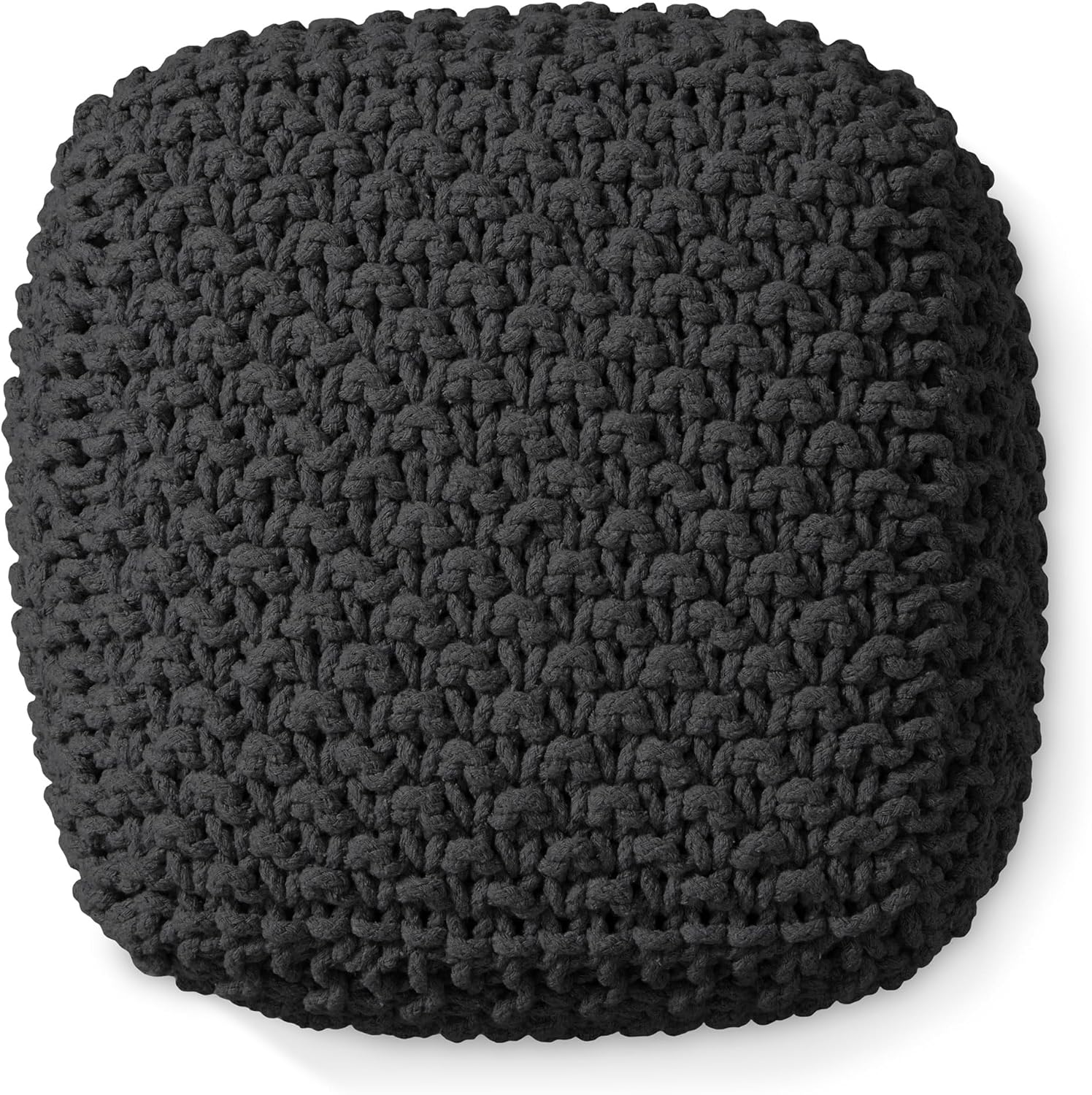 Casafield Square Pouf Ottoman, Black - 18.5" W x 18.5" D x 14.5" H Cotton Knit Foot Stool - Boho Floor Pouffe for Living Room, Bedroom, Home Office