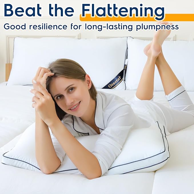 OTOSTAR Pillows Queen Size Set of 2 Bed Pillows for Sleeping Cooling Pillows 2 Pack with 3D Microfiber Filling Breathable Cover Pillows for Back Stomach or Side Sleepers Soft Fluffy Pillows for Bed