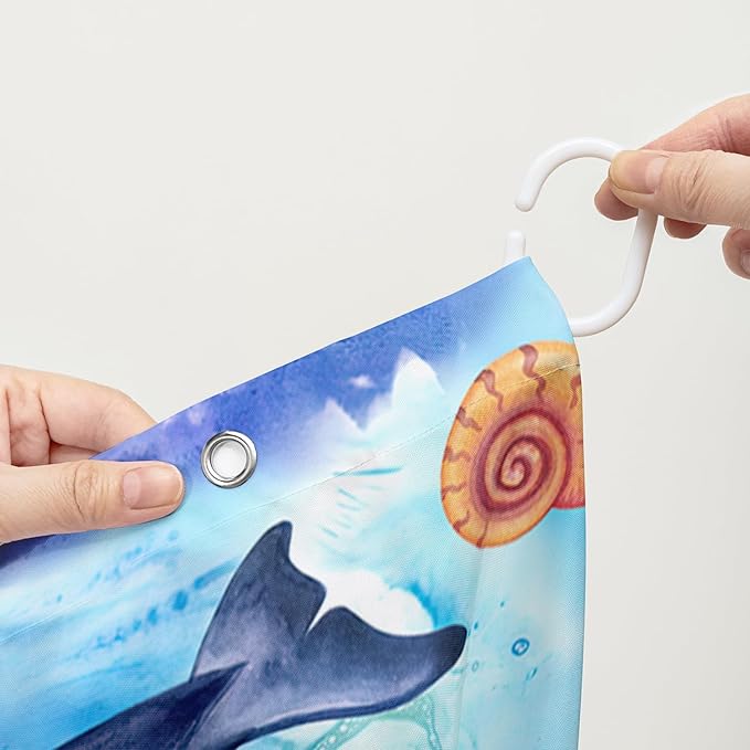 AILONEN Cute Cartoon Whale Shower Curtain,Kawaii Marine Animal Whale Bathroom Curtain for Kids Girls Boys,Blue Tie Dye Bath Curtain Set,Seaweed Fabric Shower Curtains for Bathroom, 72" W*72" H
