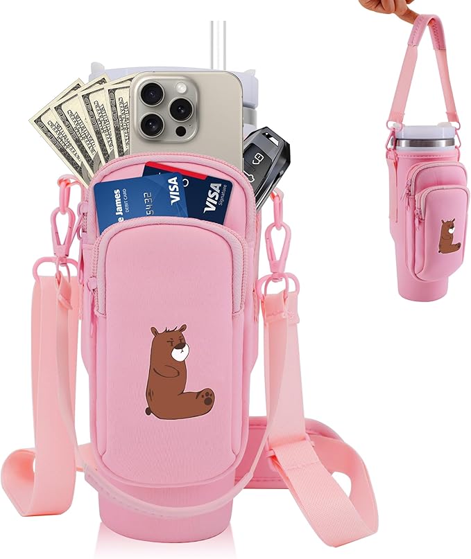 - 🍊【Newest Cup Accessories for Stanley Quencher H2.0】Enhance your outdoor adventure experience with our specially designed water bottle sleeve for the Stanley 40 oz cup. Crafted with meticulous stitching, the bottle holder with an adjustable shoulder strap snugly fits the bottle; the storage pocket design provides additional storage space, freeing up your hands.