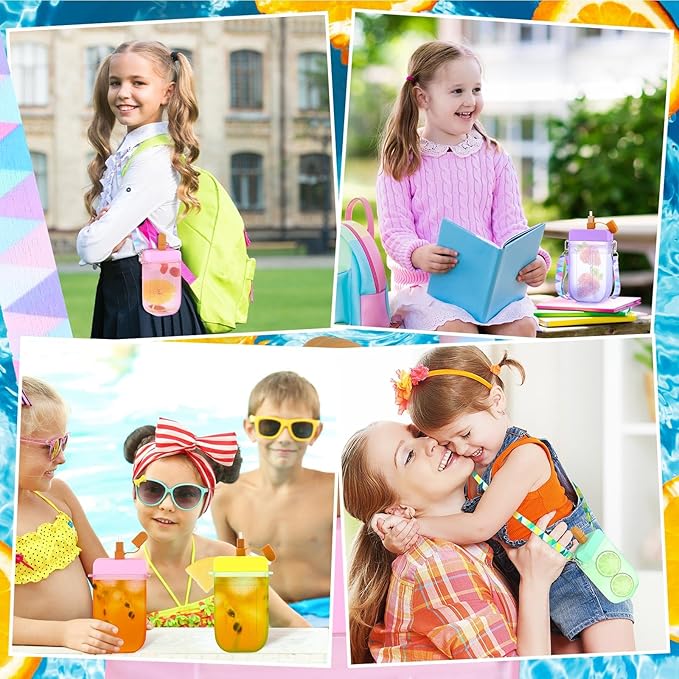Patelai 8 Pcs Cute Water Bottles with Straw Kawaii Watermelon Ice Cream Cups Leak Proof Drinking Bottles with Adjustable Shoulder Strap for Sports Travel Camping(Cute Style)
