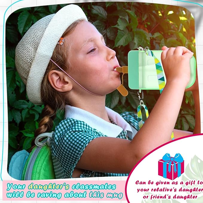 - Adjustable and Practical Shoulder Strap: the water bottle for kids is designed with a colorful adjustable shoulder strap, with hooks at both ends, which is easy for you to buckle on both ends of the water bottle, bringing you a lot of convenience; And the practical strap also makes it convenient for carrying around without overflow