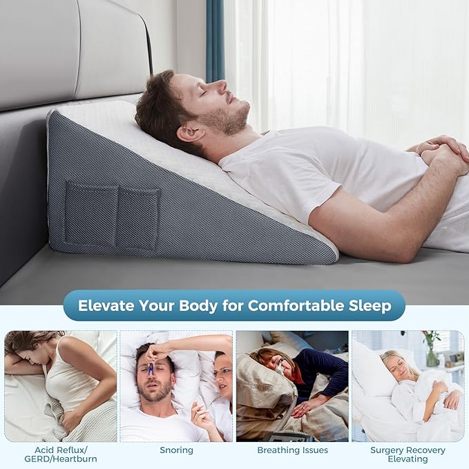 - 【Versatile Use Bed Wedge for Your Health】Innovative wedge pillows are expertly designed based on Fowler’s position theory and extensive nursing research. This versatile pillow is the perfect size for elevating the body, making it ideal for post-surgery recovery, acid reflux, GERD, snoring, breathing issues, back pain relief, and leg swelling. Experience tailored support and relief with this carefully crafted wedge pillow