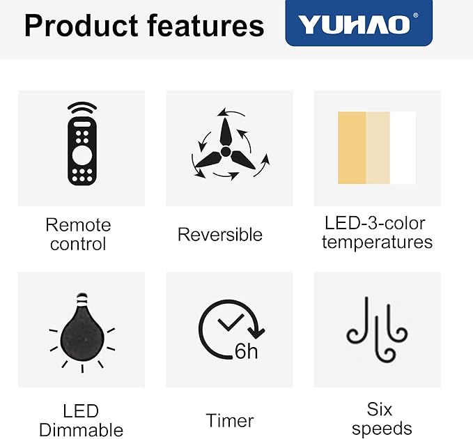 - Customizable Light : This ceiling fan comes with 3 light color changing technology, warm white, nature white and cool white, which are very convenient to control with the remote control.