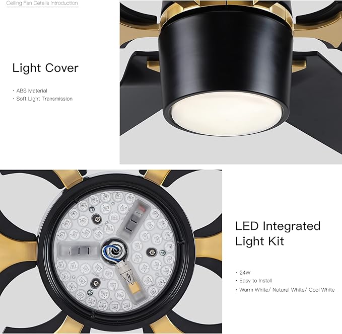 - Customizable Light : This ceiling fan comes with 3 light color changing technology, warm white, nature white and cool white, which are very convenient to control with the remote control.