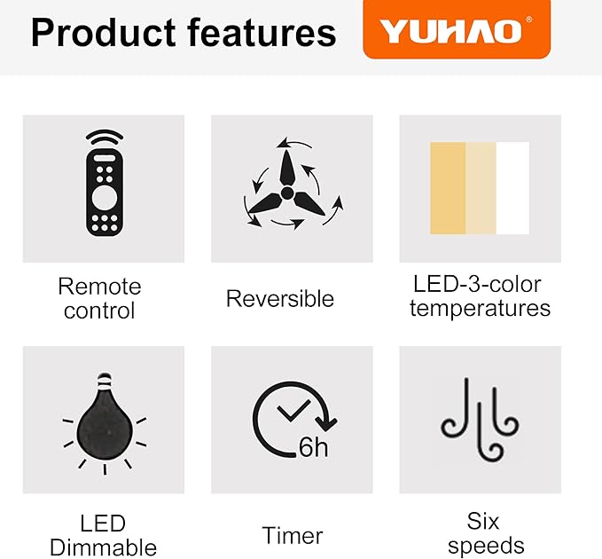 - Timing Function: The ceiling fan features timing function which could meet the different length of fan lights work requirements. With the function of memory, before turn on again should be waiting for the 7s after shutdown.