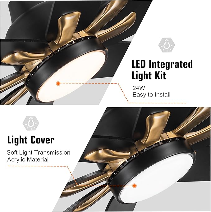 - Stylish Design: Blades with black finish matche up with a little gold frame decoration would be modern and fashionable. It can be installed at top floor which angle is wihtin 15 degrees.