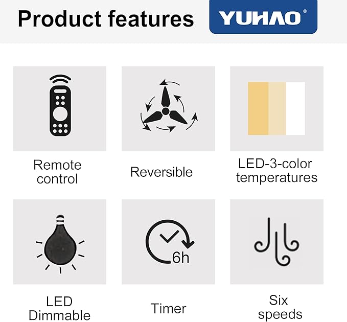 - Customizable Light : This ceiling fan comes with 3 light color changing technology, warm white, nature white and cool white, which are very convenient to control with the remote control.