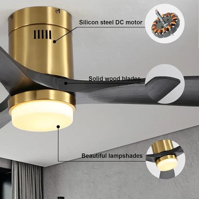 - Flush Mount Design: Featuring low-profile flush mount installation, this ceiling fan with stylish solid wood blades and a modern lampshade seamlessly enhances your space.