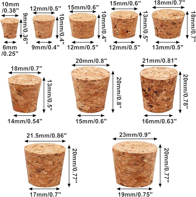 - Cork Stoppers Assorted Sizes - You will receive 110pcs wine bottle corks of 10 sizes, including mini corks, small corks and large corks. Wine corks bulk quantity and rich size will meet your different needs.