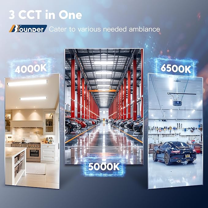 - 3CCT selectable: Our 4ft LED wraparound light fixture offers the option to choose between three different color temperatures - 4000K, 5000K, and 6500K. You can easily switch between these options before installing the fixture on your ceiling, allowing you to select the desired lighting ambiance from warm to cool daylight-like tones.