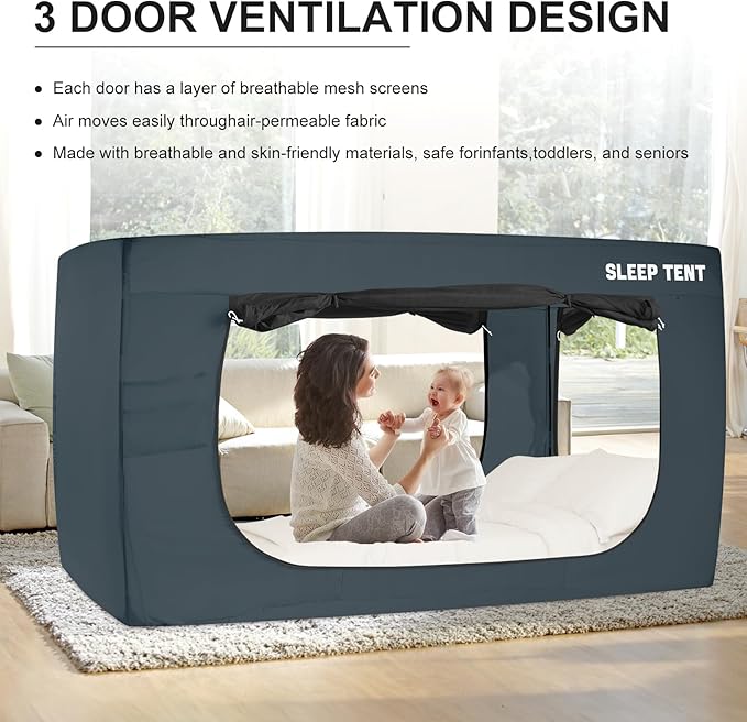 - Easy Entrance - 3 doors: This bed tent has 3 large doors with double-layer zippers for easy to open and close. Each door has double-layer panels: the first layer is premium breathable mesh to keep air in and bugs out; the second layer is a shading layer that blocks over 70% of light, providing a dark and cozy sleeping space. You can adjust the panels to open or close to reach the perfect shade for you.