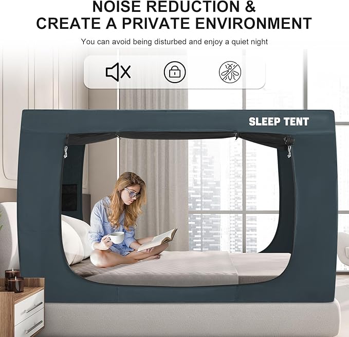 Bed Tent Twin Bed Canopy Dream Tents for Indoor Portable Blackout Tents Privacy Space Warm Breathable Sleeping Tents for Kids and Adult(Navy Blue,Mattress Not Included) Reducing Light