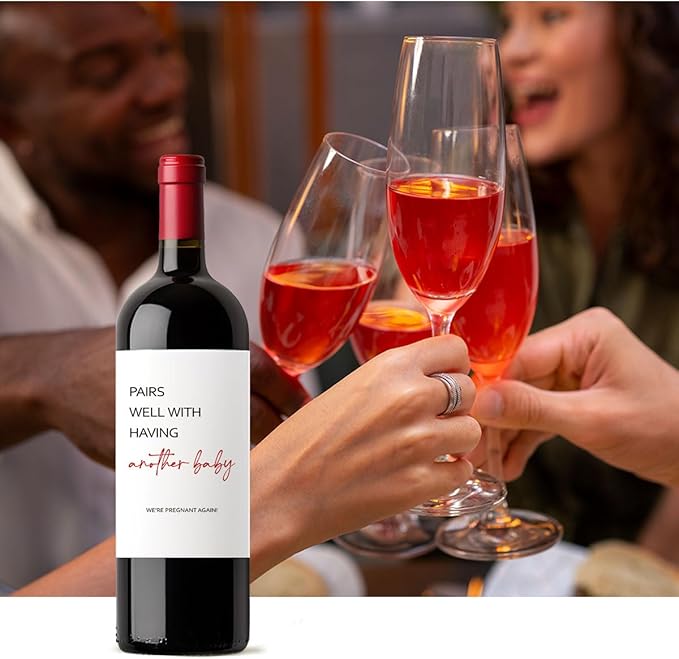 • 【Second Baby Announcement Wine Labels】Make pregnancy announcement more fun! Our second baby wine label says "Pairs Well With Having Another Baby", these unique wine labels are the perfect way to celebrate a new life is coming with funny sayings that everyone will love. Make memories last with these pregnancy announcement wine bottle stickers.