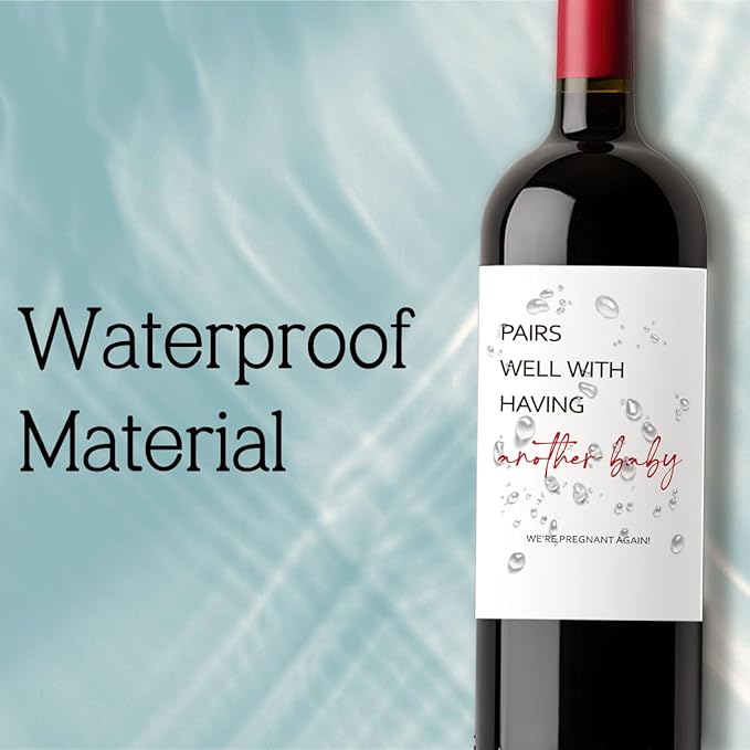 • 【Easy to Apply】Our second baby announcement labels are designed to be easy to use, just peel it off and stick it on your favorite wine bottle, and a unique pregnancy gift is ready! It is waterproof, which means they will not fade or bleed, even if stored in the refrigerator.
