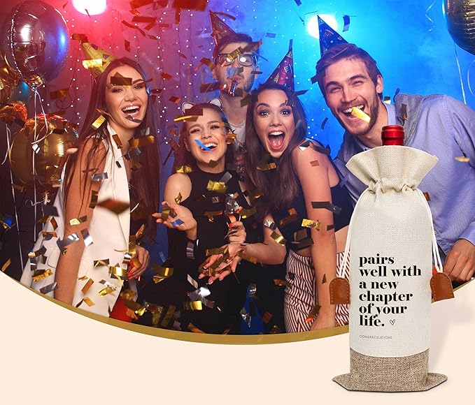 New Chapter Gifts Wine Bag, New Job Wine Champagne Bag, Cotton Linen Wine Gift Bag With Drawstring, Retirement, New Beginning Gifts For Leaving Coworker, Going Away Work Friend-16