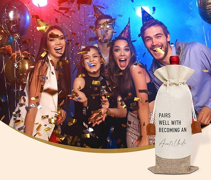 Pairs Well With Becoming Aunt & Uncle Wine Bag, Wine Champagne Bottle Gift Bag, Cotton Linen Wine Gift Bag With Drawstring, Gift for Pregnancy Announcement, New Aunt Uncle for Baby Announcement-15