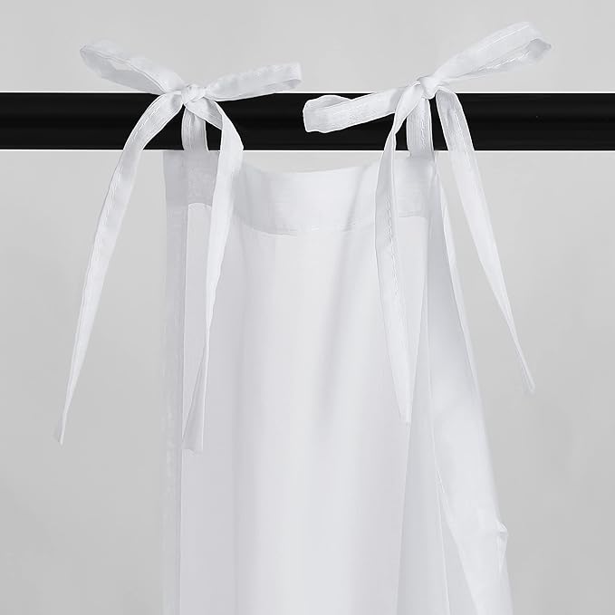 - Included Components:8 Sheer Panels/56 Tie tops (7 per panel)/8 Tie back(attached to curtains). Each panel measures W45 x L90 inches. Bed frame is not included.
