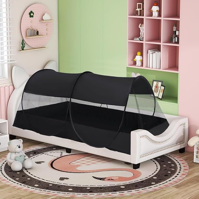 Akiky Mosquito Net Pop Up Bed Net Tent with Black Bottom Portable&Foldable Bed Canopy for Bunk Bed Twin Sleeping Tent for Indoor Outdoor