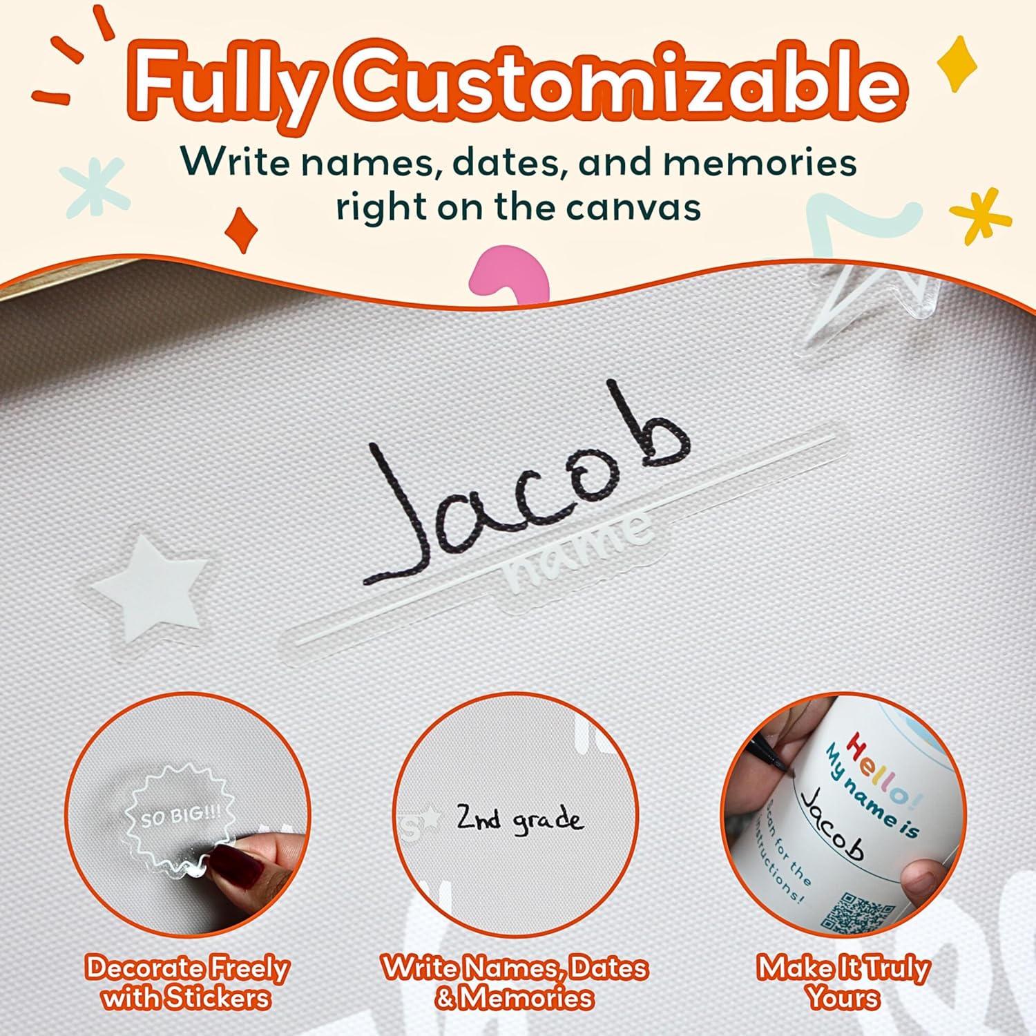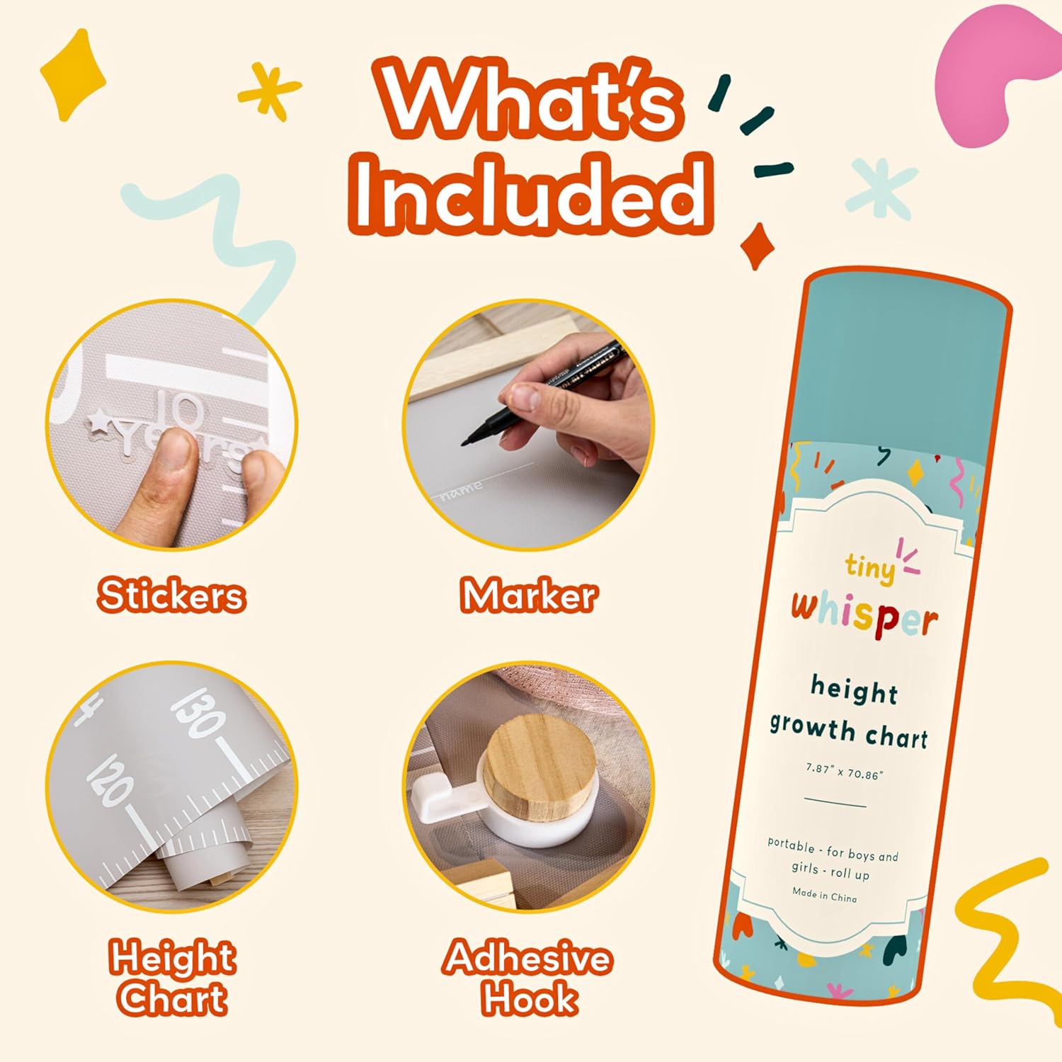 • Customizable Growth Chart for Wall: Make your child’s room unique with a personalized kids height chart. This growth chart for kids includes fun stickers, perfect for toddler room decor and a must-have for any baby room.